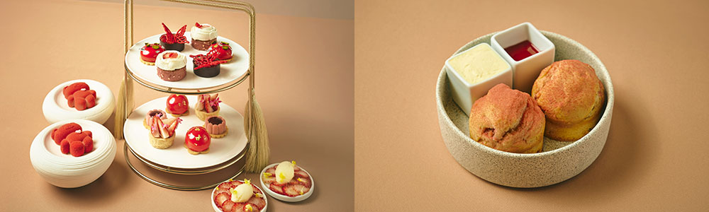 この時期ならではの華やぎを味わう「ストロベリーアフタヌーンティー」。まるで宝石のように輝くルビー色のイチゴを贅沢に使用した9種類のスイーツと4種類のセイボリーをたっぷりとご堪能ください。