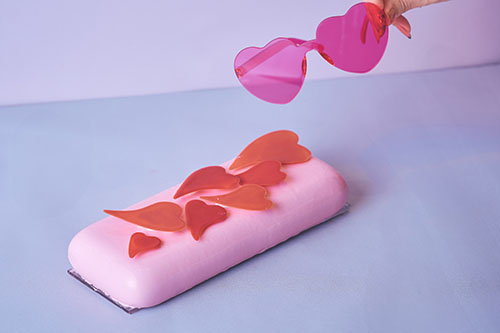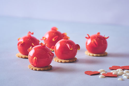 マドレーヌビスキュイにフォレストベリーゼリーと抹茶ババロアをあわせました。ハートをあしらったかわいらしいビジュアルとともにお楽しみください。