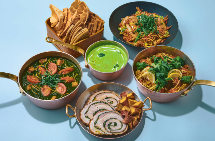 北インド発祥、ほうれん草とポテトのカレー「アルー・パラック」、約10種のスパイスを使用したカレー「ベジタブルキーマ」をはじめ、中国の「客家(Hakka)ヌードル」、パセリとバジルの香り豊かなハーブソースを巻いたイタリア伝統の「ポルケッタ」など、個性豊かな味わいをラインナップしています。