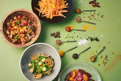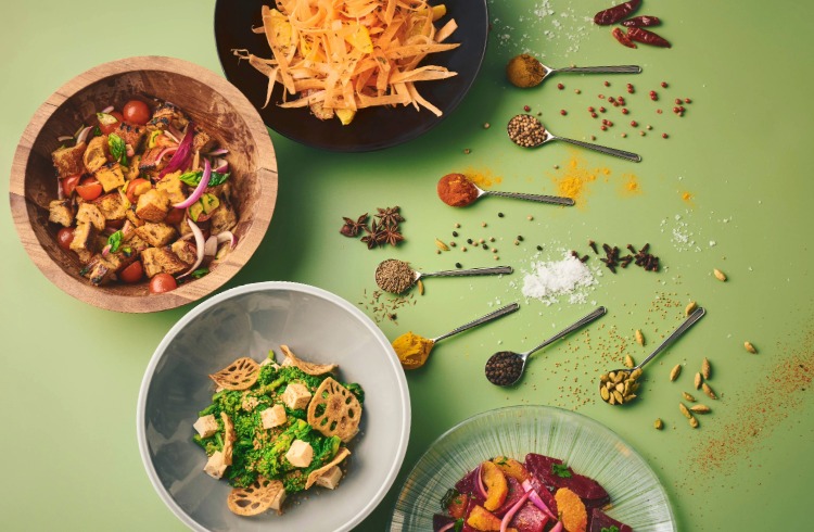 イタリア・トスカーナ発祥の「パンツァネッラ」、そしてフランス・ビストロの定番「キャロットラペ」、ビーツの自然な甘みとスパイスの香りが調和するモロッコの「スパイスビーツサラダ」など、国際色豊かなラインナップです。