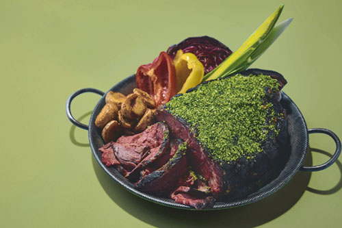 一口ごとに肉の旨味とハーブの香りが広がる贅沢な味わいをどうぞ。カリッと焼き上げたローストポテトや旬野菜のローストもご用意しております。