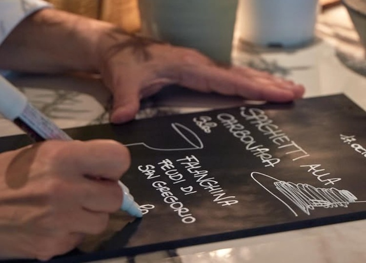 テーブルに届けられる黒板に、メニューには載っていない特別なおすすめ料理が!